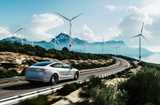 Energy storage system, a common use for lithium-ion batteries, alongside solar panel and wind turbines.