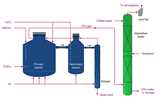 The SVP (Single Vessel Process) chlorine dioxide process family consists of several similar processes based on the same equipment configuration. It is relatively easy to switch from one to the other. The most common chemicals for SVP processes is sulphuric acid for acidification and methanol as reducing agent to produce ClO2.